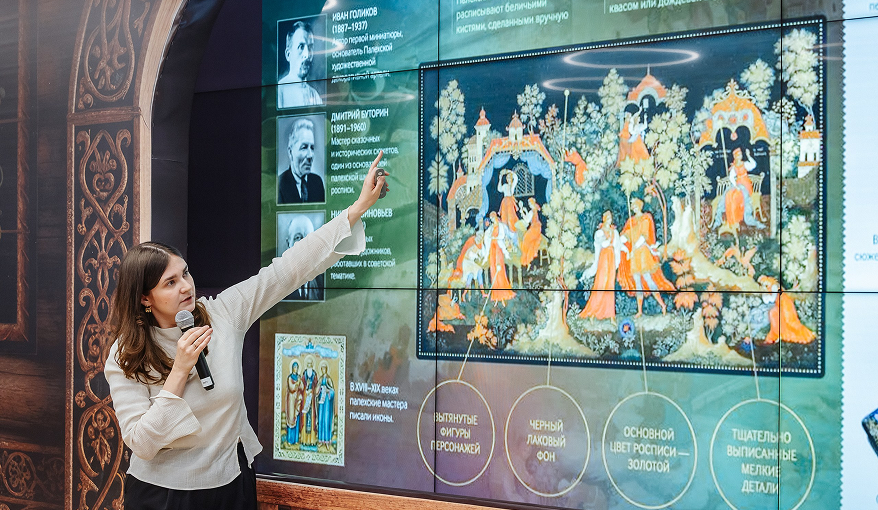 Лекцию провела Ксения Храмова — художник-мастер декоративно-прикладного искусства и народных промыслов, преподаватель с 15-летним опытом, искусствовед, специализирующийся на русских художественных традициях. Спикер рассказала об истории палехского искусства, его традициях, художественных особенностях и месте в системе народных промыслов России. Участники мероприятия также узнали о других центрах лаковой миниатюры и особенностях их художественного языка.